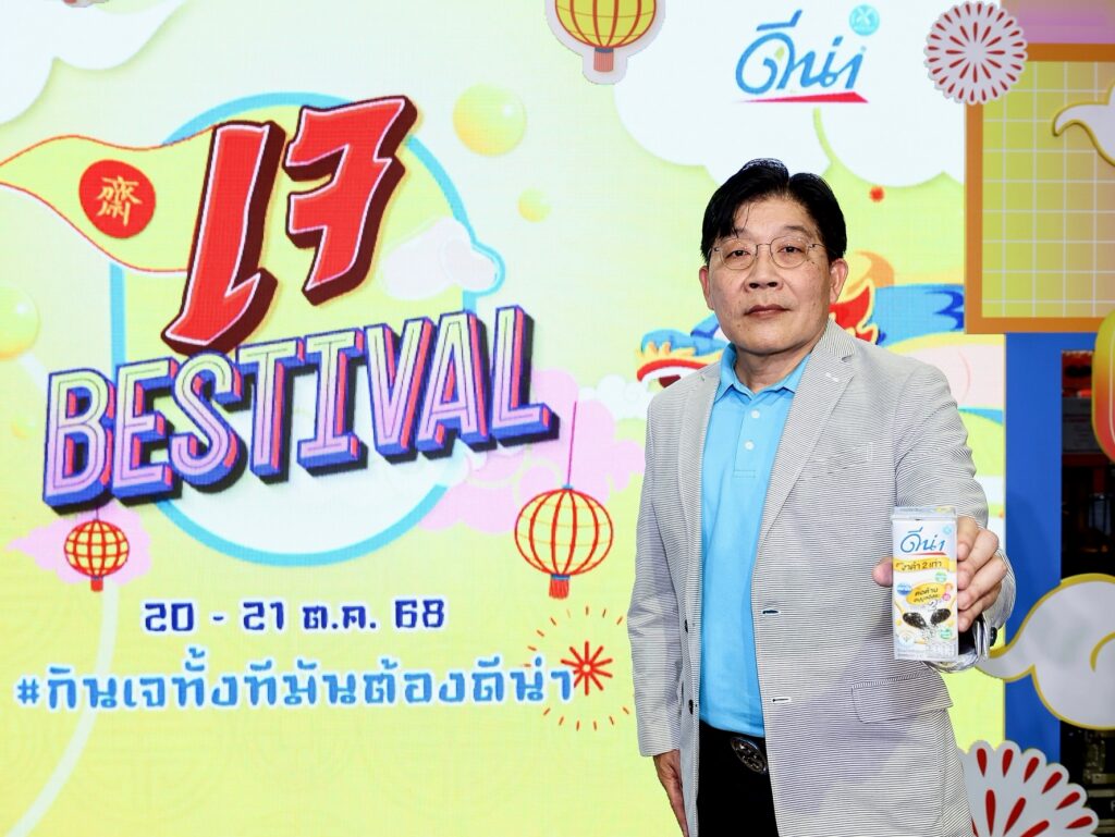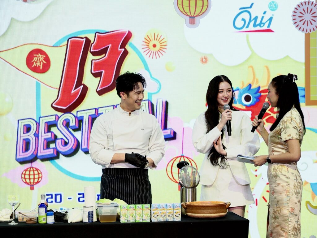 คุณจิตรภณ ไตรรัตน์วรวุฒิ ผู้จัดการฝ่ายการตลาดกลุมผลิตภัณฑ์นมถั่วเหลืองดีน่า บริษัท แดรี่พลัส จำกัด ในกลุ่มบริษัทดัชมิลล์ ให้สัมภาษณ์เพิ่มเติมว่า “ผลิตภัณฑ์ดีน่า ของเราเป็นผลิตภัณฑ์นมถั่วเหลืองผสมธัญพืช ในฐานะที่เราเป็นผลิตภัณฑ์เจ ในทุกๆ สูตร อีกทั้งยังเป็นผลิตภัณฑ์ที่ได้รับการการันตี สินค้าทางเลือกเพื่อสุข_ภาพ เราจึงให้ความสำคัญกับเทศการกินเจ เป็นประจำในทุกๆ ปี ซึ่งในปีนี้เราก็ได้สนับสนุนเทศกาลกินเจในหลากหลายพื้นที่ทั่วประเทศและหนึ่งในนั้นคืองานวันนี้ กับ กิจกรรม เจ BESTIVAL 2025 กินเจทั้งทีมันต้องดีน่า ภายในงานรวมไลฟ์สไตล์การกินเจมาให้ครบครัน ทั้งบูธอาหารเจ เมนูอาหารเจจากนมถั่วเหลืองดีน่า การคอลแลปกับแบรนด์อื่นๆ ที่รังสรรค์เมนูเจตลอดเทศกาลเจปีนี้ อีกทั้งเอาใจสายมูด้วยการสักการะเทพเจ้า และซุ้มดูดวงจากสมาคมโหรแห่งประเทศไทยฯ และโปรโมชั่นพิเศษ